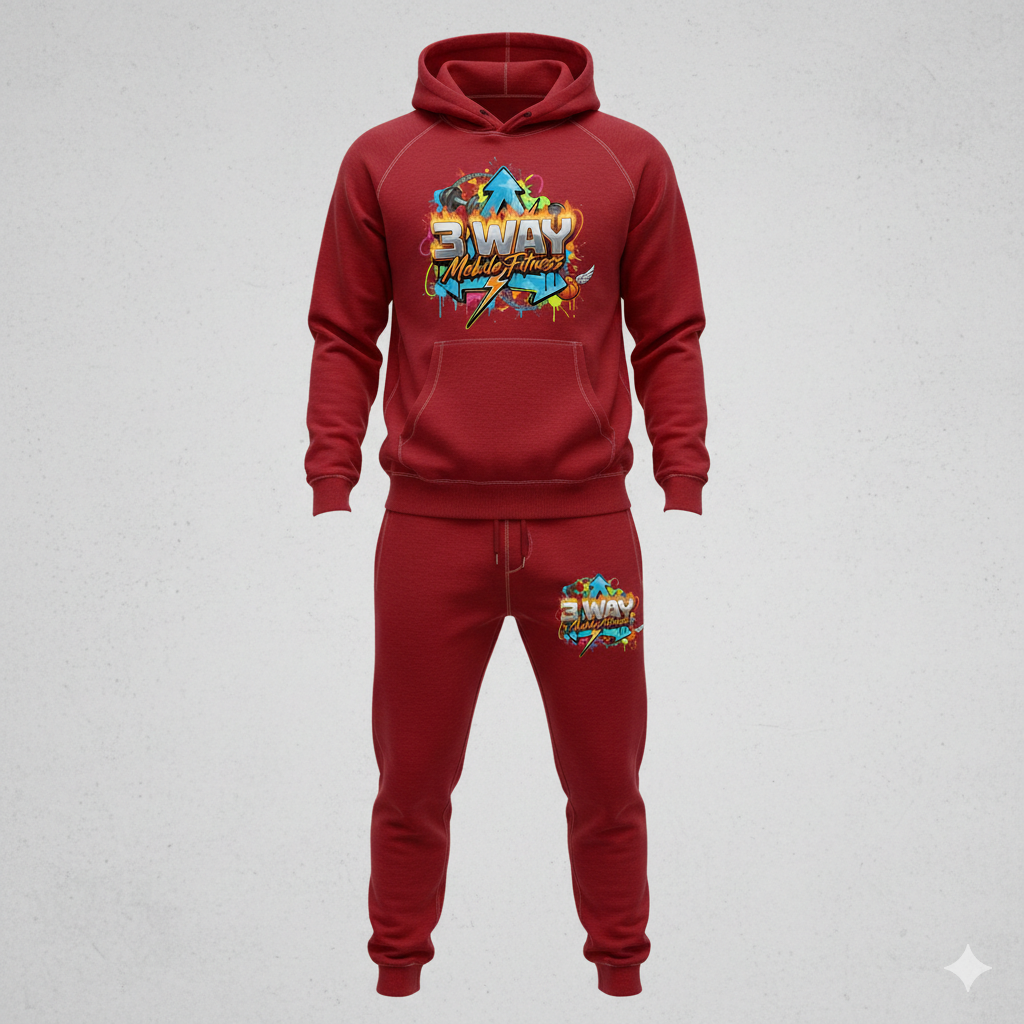 #101 Aqua Blue/Orange on Red Sweatsuit